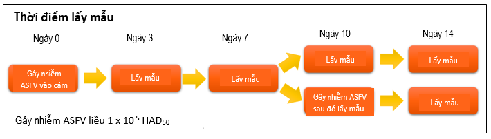 Hình 1.Sơ đồ minh họa bố trí thí nghiệm việc gây nhiễm và tái nhiễm ASFV.