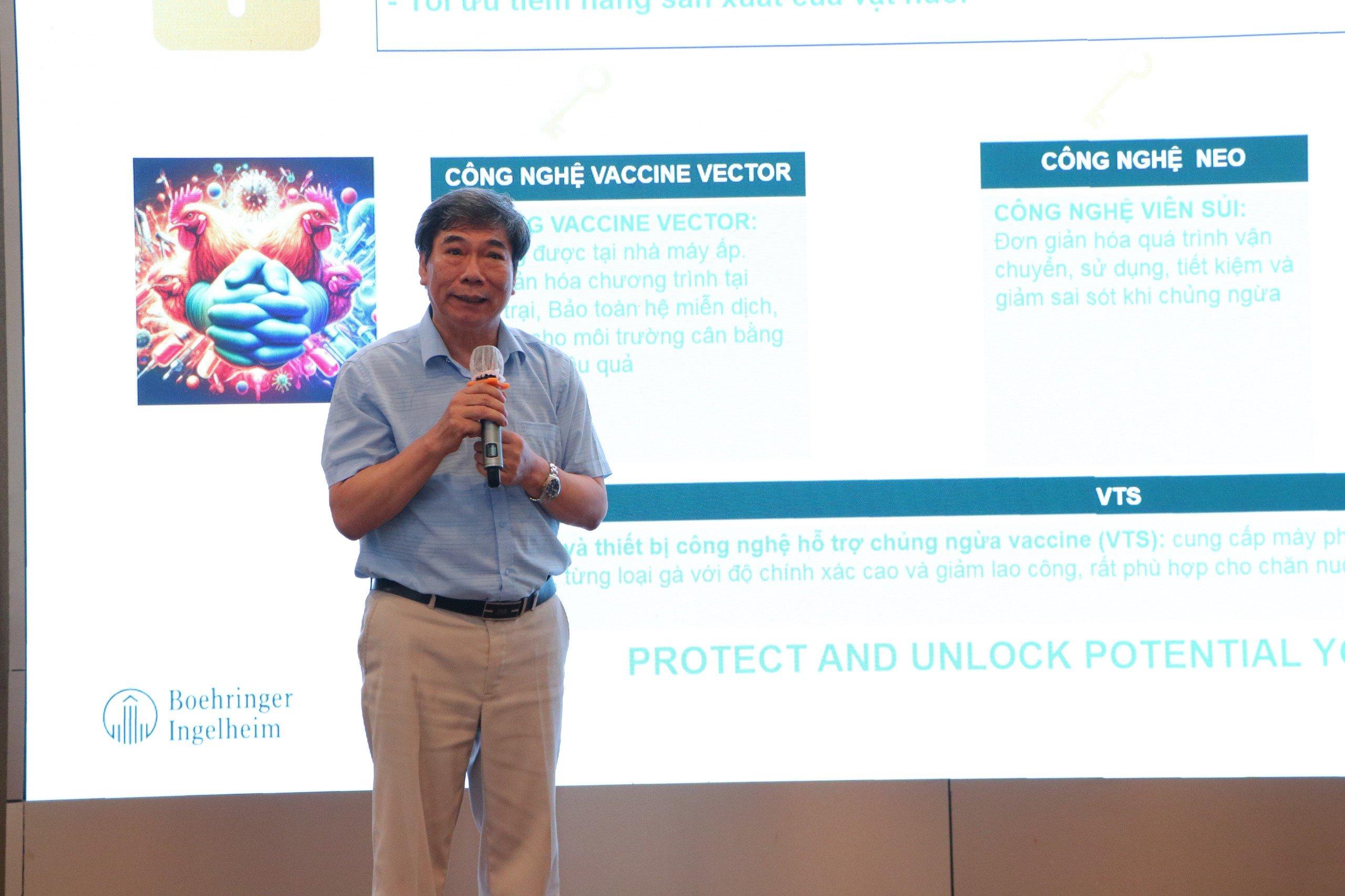 Phát biểu tại sự kiện, PGS. TS Nguyễn Văn Năm, Phó Chủ tịch Hiệp hội Thuốc Thú y Việt Nam đánh giá, hiện nay Boehringer Ingelheim đang có ba công nghệ sản xuất vắc xin hiện đại nhất, trong đó, vắc xin về công nghệ gen với 1 mũi tiêm có thể phòng chống được ba loại bệnh, mặc dù đây là loại vắc xin sống. Với công nghệ viên sủi, đây là một công nghệ thường được dùng trong y dược dành cho con người nhưng dùng trong thuốc thú y lại rất ít, khi áp dụng được công nghệ này Boehringer Ingelheim đã đi trước thời đại.