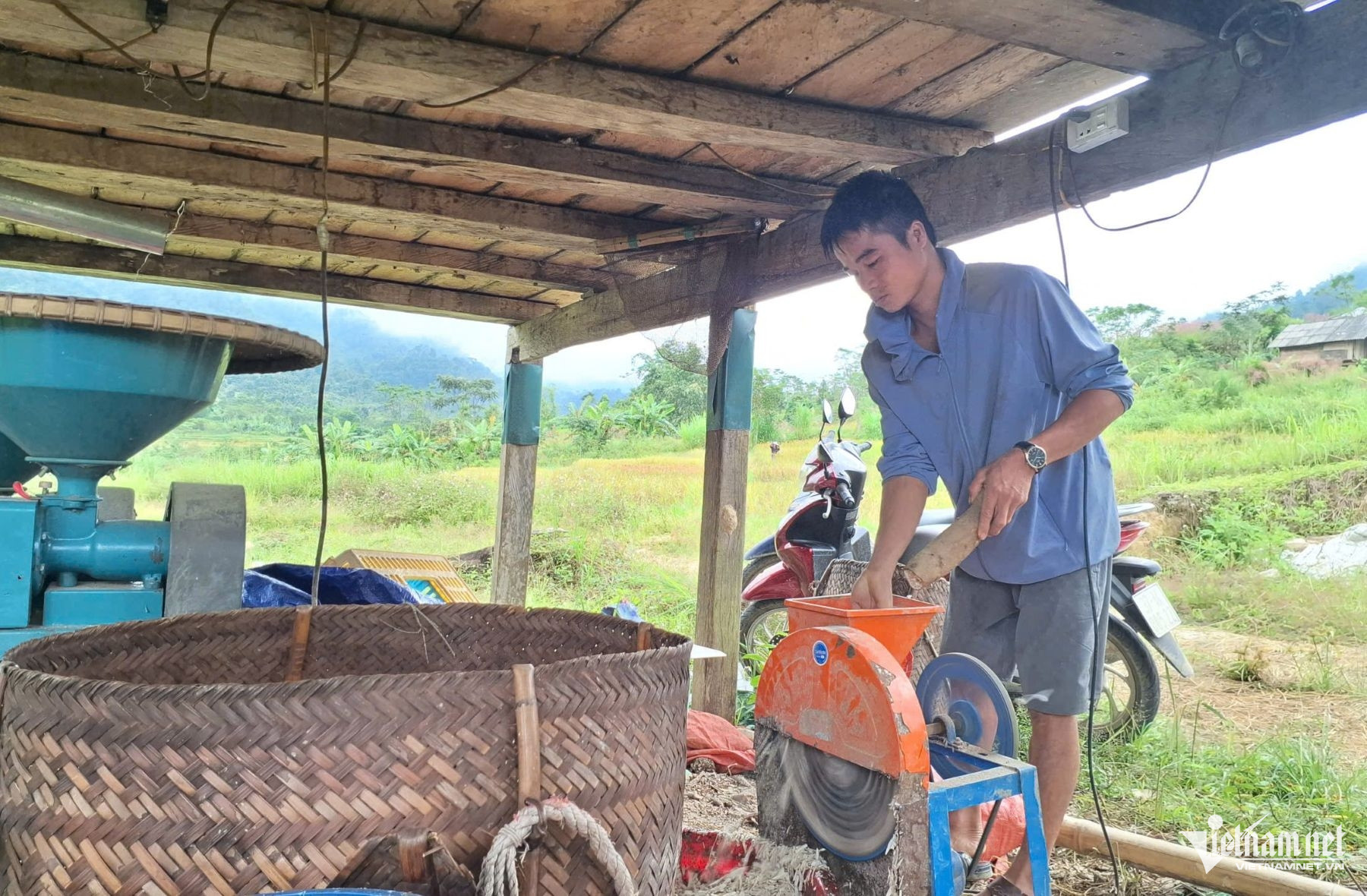 “Vua” gà bản Quang Văn Trung đang vận hành máy cắt sắn làm thức ăn chăn nuôi. Ảnh: Phạm Tiến