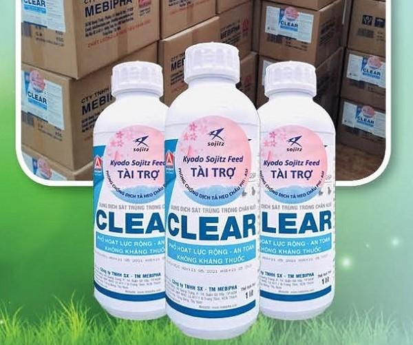 Sản phẩm Clear có tính sát trùng mạnh mẽ nhưng an toàn tuyệt đối, vì không gây độc cho vật nuôi và người sử dụng. Khi sử dụng, người chăn nuôi có thể phun thuốc khi vật nuôi đang ở trong chuồng để sát trùng chuồng trại định kỳ hàng tuần, giúp hạn chế mầm bệnh trong đàn. Sản phẩm thẩm thấu và có khả năng bám dính tốt trên bề mặt chuồng nuôi nên tác động nhanh, cho hiệu quả sát trùng mạnh và kéo dài (từ 7-10 ngày), ngăn chặn sự tái nhiễm của mầm bệnh. Sản phẩm dễ sử dụng, dễ bảo quản, độ ổn định hoạt lực tốt, không bị ảnh hưởng bởi chất lượng nguồn nước và độ pH của môi trường. Ngoài ra, bà con chăn nuôi không cần lo lắng vì Clear không gây ăn mòn dụng cụ, chuồng trại và đặc biệt không gây ô nhiễm môi trường.