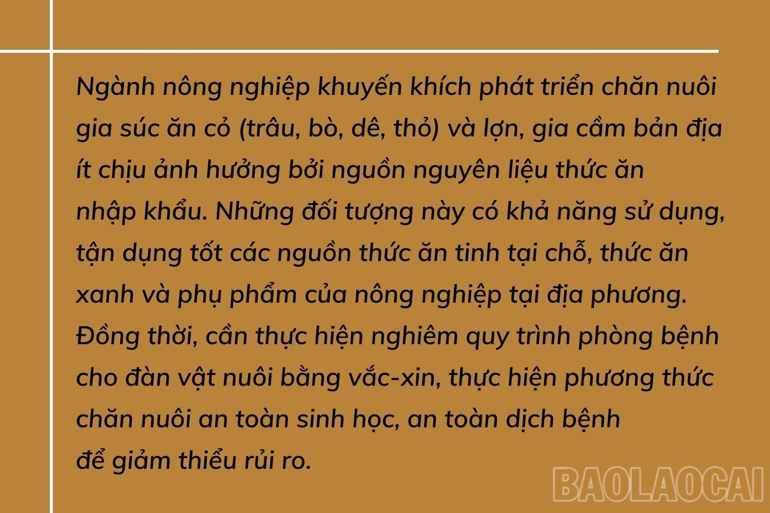 Đối với người chăn nuôi lợn, bên cạnh việc giá thức ăn chăn nuôi tăng mạnh thì tâm lý lo sợ ảnh hưởng của dịch bệnh nên chỉ dám nuôi cầm chừng, không tăng đàn. Các hộ thực hiện chăn nuôi an toàn sinh học, an toàn dịch bệnh, ứng dụng khoa học – kỹ thuật. Cũng nhiều hộ chuyển sang nuôi gia cầm sử dụng ít thức ăn công nghiệp hơn và thời gian nuôi có thể kéo dài.