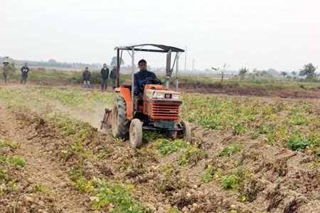 Thu hoạch khoai tây bằng máy ở xã Đại Đồng (Văn Lâm)