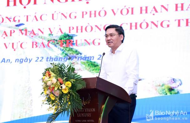Sau khi chia sẻ kinh nghiệm trong công tác phòng, chống thiên tai, Phó Chủ tịch UBND tỉnh Hoàng Nghĩa Hiếu đề nghị được hỗ trợ kinh phí khoảng 3.500 tỷ đồng xây dựng công trình chống hạn vùng Nam - Hưng - Nghi - TP Vinh, hồ chứa Thủy lợi Thác Muối.