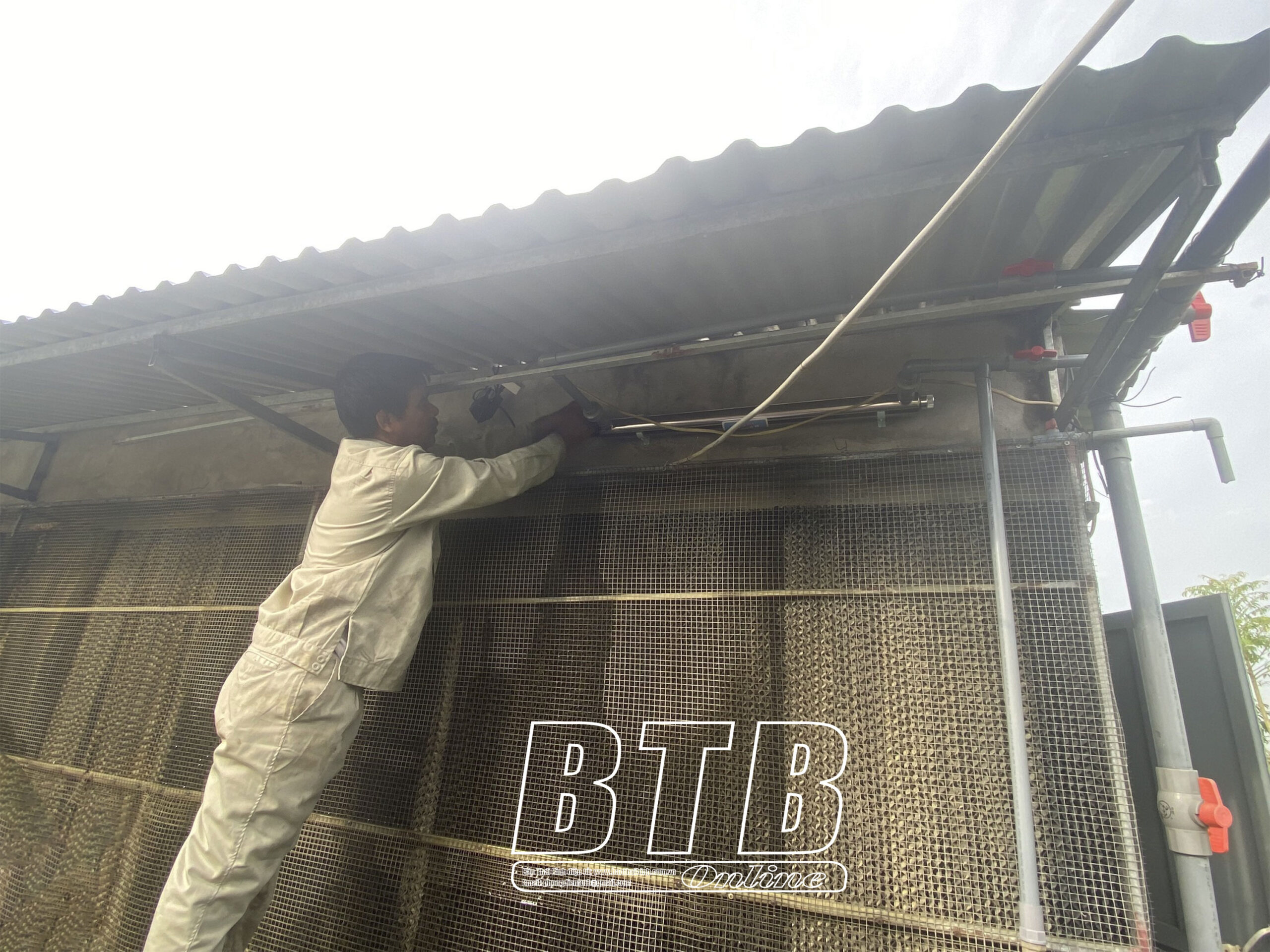 Lắp đặt hệ thống đèn UV tại trang trại nuôi lợn của gia đình anh Hoàng Cao Cường, xã Đoan Hùng (Hưng Hà).