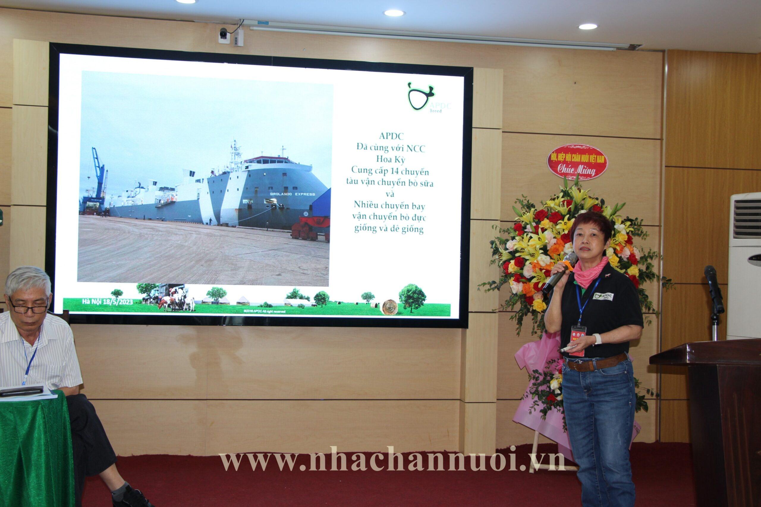 Cũng trong Hội thảo, bà Tô Tuệ Lang, Chủ tịch, Tổng Giám đốc công ty TNHH MTV Bò sữa châu Á – Thái Bình Dương đã giới thiệt một số giống gia súc nhập khẩu và đánh giá chất lượng cũng như khả năng thích nghi giống gia súc ăn cỏ về Việt Nam.