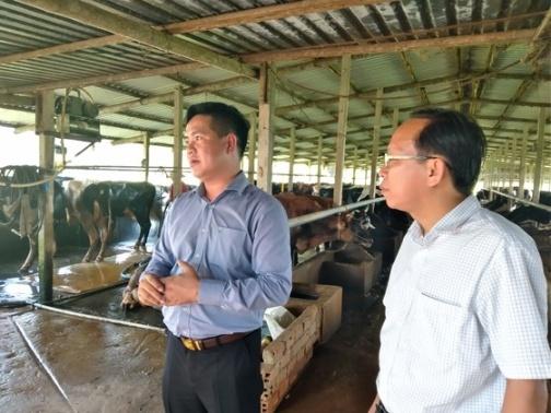 Lãnh đạo ngành nông nghiệp thăm mô hình nuôi bò ở huyện Gò Dầu.