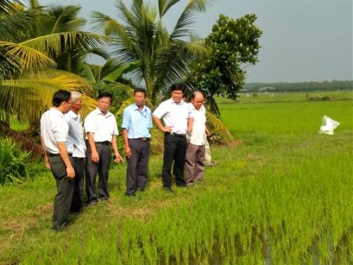 Lãnh đạo ngành nông nghiệp Tây Ninh thăm mô hình lúa chất lượng cao ở huyện Gò Dầu.