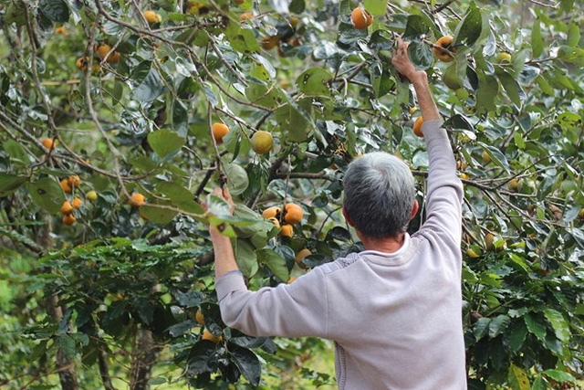 Ông Nguyễn Duy Hưng, chủ vườn hồng tại phường 3 (TP Đà Lạt), cho biết những năm trước hồng trĩu quả, không thấy cả ngọn, phải dùng cây để đỡ cành khỏi bị gãy.