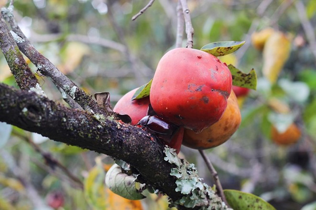 Một số diện tích hồng bị trụi lá hoàn toàn, mỗi cây chỉ còn trơ lại vài quả.