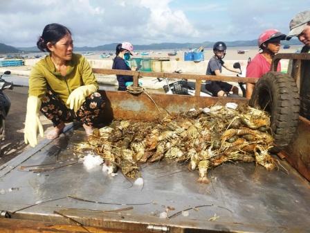 Nông dân Phú Yên xót xa nhìn tôm hùm chết hàng loạt do mưa lũ. Ảnh: Dũ Tuấn |