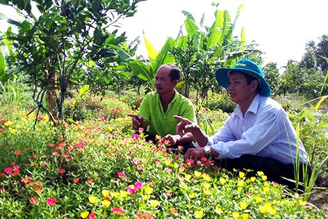 Ông Mai Văn Chợ, ấp Bình Trung, xã Long Bình, thị xã Long Mỹ (Hậu Giang) đã có cách làm lạ mà hiệu quả. Đó là trồng 5 loài hoa mười giờ Đà Lạt dưới gốc cam mật để giảm độc hại, đỡ tốn tiền do sử dụng ít đi thuốc trừ sâu.