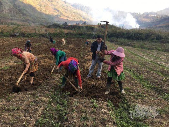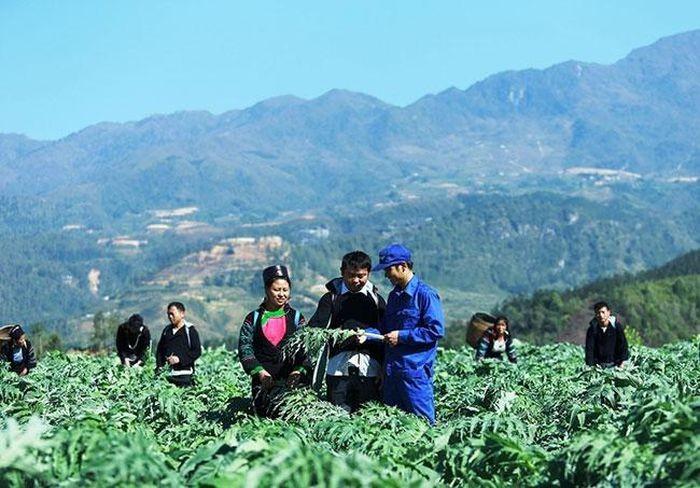 Cán bộ kỹ thuật hỗ trợ bà con huyện Bắc Hà trồng dược liệu ngay tại đồng ruộng. (Ảnh minh họa)