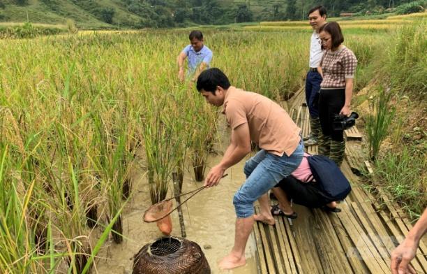 Người dân xóm Hoài Khao, xã Quang Thành, huyện Nguyên Bình từ lâu đã thả cá xuống ruộng lúa. Ảnh: Công Hải.