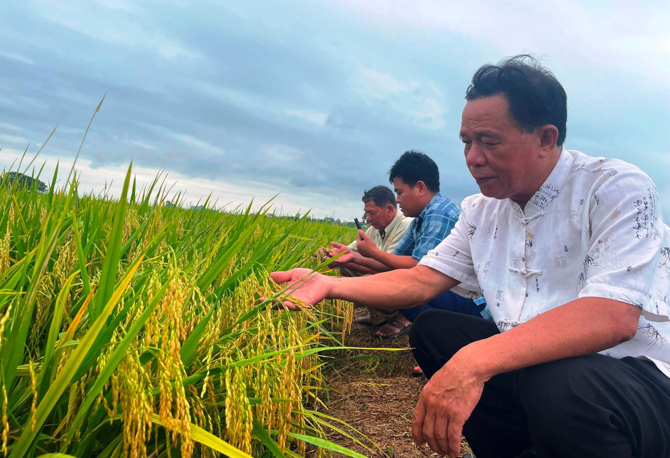 Ông Nguyễn Bá Tứ - Chủ tịch HĐQT kiêm Giám đốc HTX Nông nghiệp Liên Thành khảo sát thực tế, đánh giá hiệu quả mô hình giống lúa KR1.