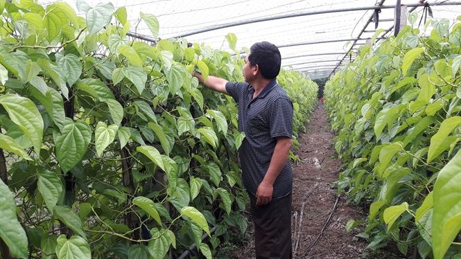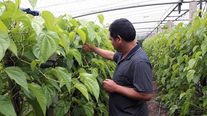 Ông Thái đầu tư hệ thống cọc chống và lưới bao nhiều lớp, cộng với quá trình bón phân khoa học để cho ra cây trầu khỏe mạnh và chống chịu sâu bệnh