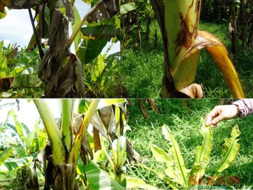 Chuối ngự bị bệnh, cây mẹ lây cây con. Ảnh: NGUYỄN TRANG