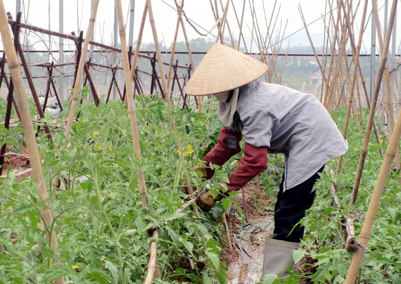 Chăm sóc cà chua tại cơ sở sản xuất của Công ty CP Đầu tư Song Hành (TX Quảng Yên).
