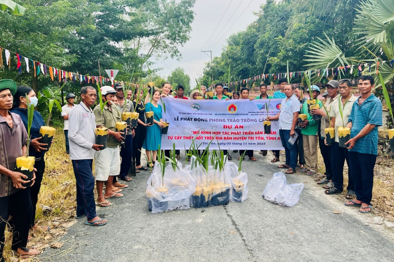Dịp này, 28 hộ dân đã ra quân trồng 50 cây thốt nốt tại đường ra cánh đồng xã Ô Lâm, huyện Tri Tôn, mỗi cây có chiều cao khoảng 1 mét. Qua đó, tăng cường tính chủ động về nguyên liệu cho bà con nông dân và thể hiện tính bền vững của dự án khi vòng đời sản xuất vẫn tiếp nối, đồng thời cải thiện môi trường cảnh quan nông thôn thêm xanh, sạch, đẹp, góp phần xây dựng Nông thôn mới tại địa phương.