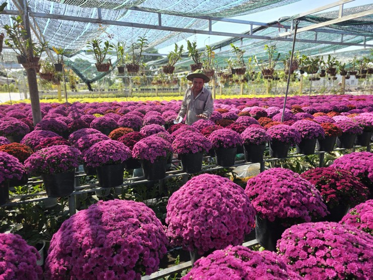 Anh cho biết năm nay gia đình anh trồng 70.000 chậu bông, tăng gấp 5 lần mọi năm. Các giống hoa chủ yếu là cúc mâm xôi, hồng, vạn thọ… Do năm nay trồng nhiều hoa, anh phải thuê thêm 10 người đến phụ chăm sóc. Anh dự tính nếu bán hết số hoa này, anh có thể lãi đến hơn 700 triệu đồng.