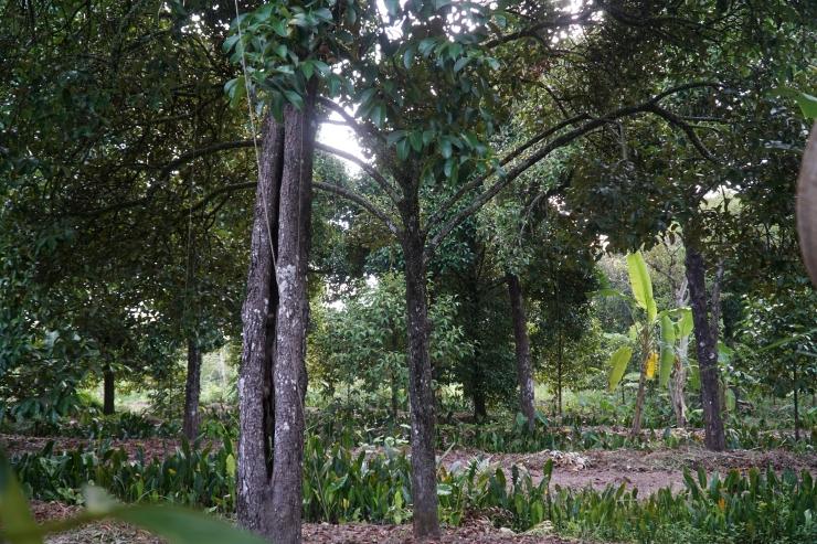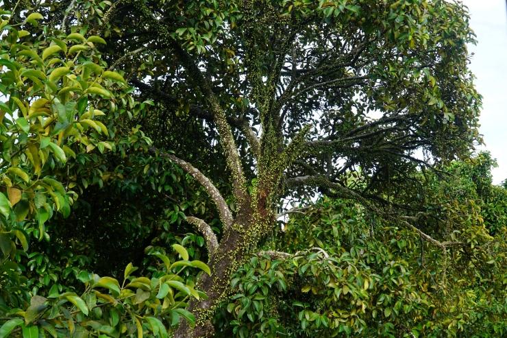 Trong khi những cây măng cụt tơ dưới 20 năm tuổi chỉ cao chừng 5m thì có nhiều cây lão cao hơn 10m, tỏa tán rậm rạp. Nhiều gốc măng cụt to cỡ một người ôm, đã mục ruỗng vì thời gian, u sần khắp thân. Nhiều cây khác đã bị rêu phong phủ từ gốc tới ngọn. Nhưng điểm chung là cây nào cũng sai trĩu quả.
