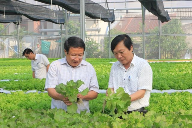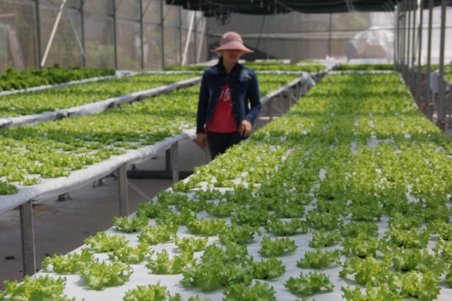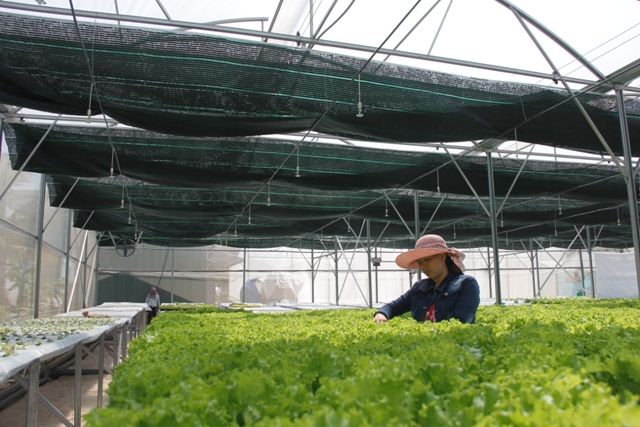 Vườn rau sạch trồng theo công nghệ thủy canh trong nhà kính của HTX Nguyên Khang là mô hình đầu tiên ở tỉnh Quảng Trị.