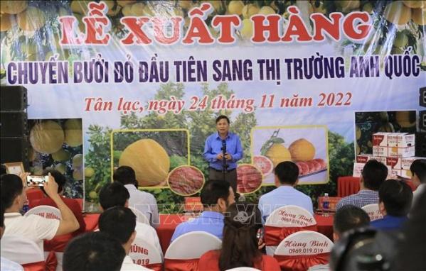 Tại buổi lễ, Phó Chủ tịch UBND tỉnh Hòa Bình, ông Đinh Công Sứ nhấn mạnh, thành quả này là sự nỗ lực của ngành nông nghiệp tỉnh, cùng các hợp tác xã và người dân địa phương huyện Tân Lạc. Bưởi đỏ Tân Lạc sẽ là nguồn cổ vũ, khích lệ để nông dân tỉnh Hòa Bình tiếp tục có những chuyến hàng đối với các mặt hàng nông sản khác được xuất khẩu, đưa xuất khẩu trở thành một trong những kênh tiêu thụ đối với những sản phẩm chủ lực của tỉnh.