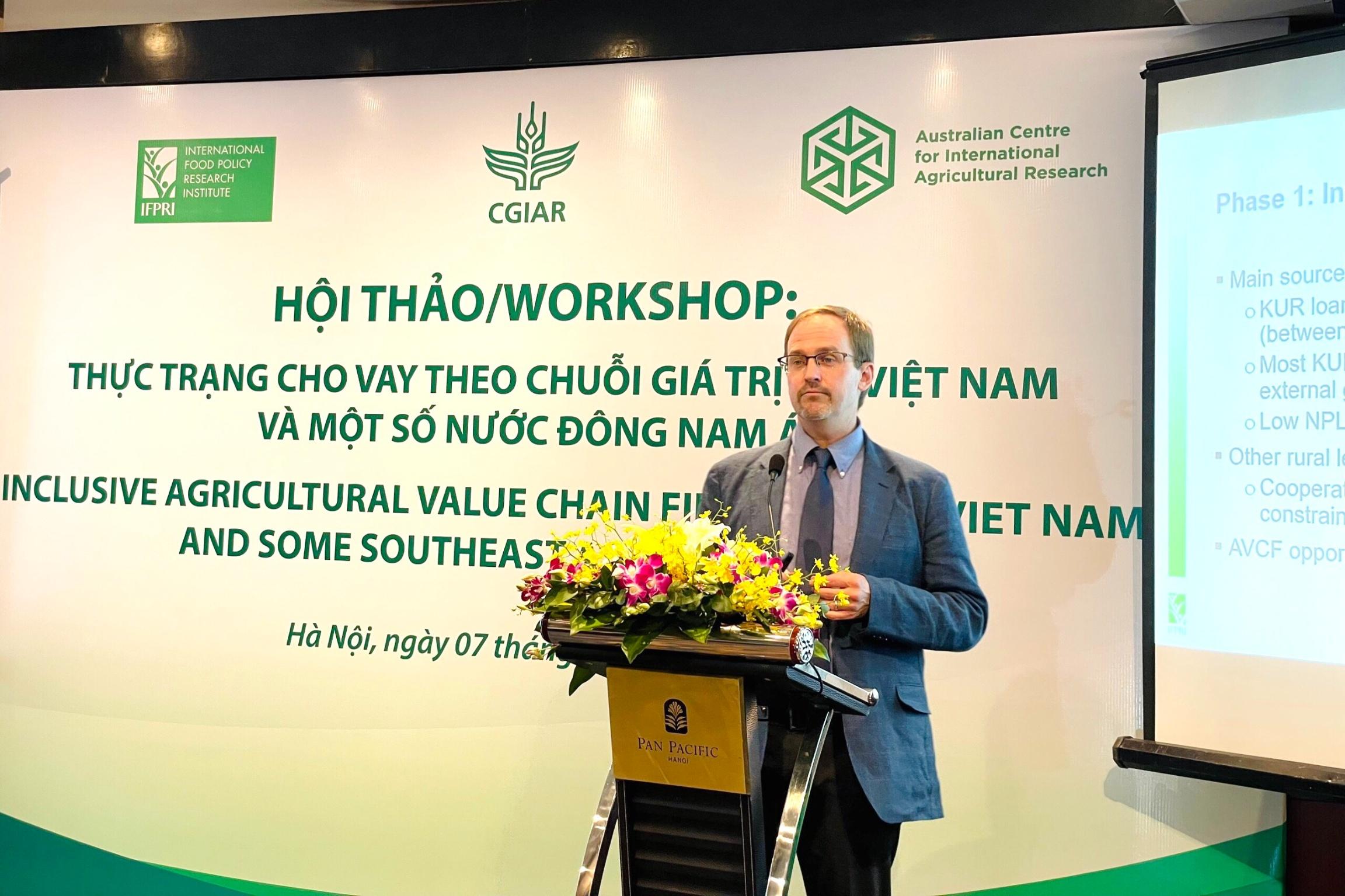 TS Alan de Brauw - chuyên gia cao cấp, Giám đốc Dự án, đại diện Viện Nghiên cứu Chính sách Thực phẩm Quốc tế (IFPRI) cho biết Dự án “Cho vay theo chuỗi giá trị nông nghiệp” được triển khai theo 2 giai đoạn. Trong giai đoạn 1, Dự án tập trung xây dựng báo cáo ở từng nước về tiềm năng phát triển chính sách liên quan; trong giai đoạn 2, Dự án đã triển khai một số thí điểm cho vay theo chuỗi giá trị ở Việt Nam và Indonesia.