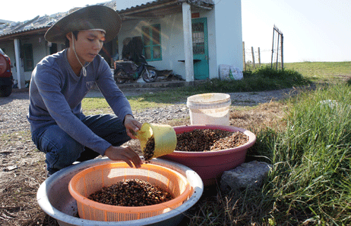 Những ngày biển động, không có nguồn dắt biển, thức ăn chính của tôm, cá là đậu tương được nấu chín.