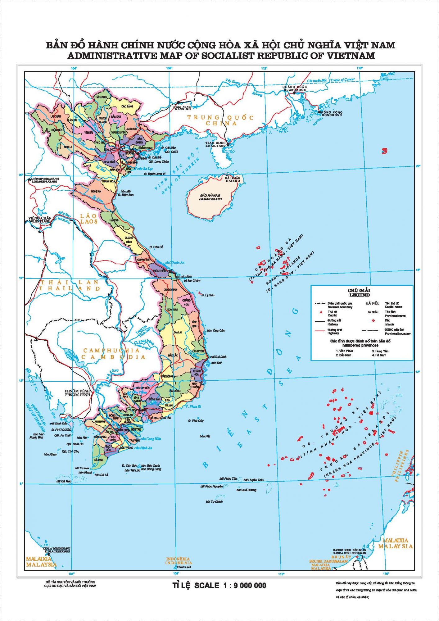 Cục Đo đạc và Bản đồ Việt Nam đã xây dựng mẫu Bản đồ hành chính nước Cộng hòa xã hội chủ nghĩa Việt Nam tỷ lệ 1 : 9.000.000.