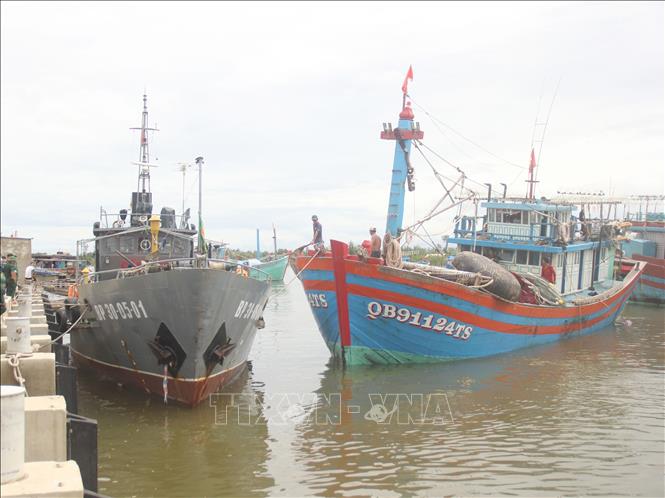 Tàu cá QB91124TS và 14 ngư dân trên tàu đã được lai dắt vào bờ an toàn - Ảnh: Thanh Thủy