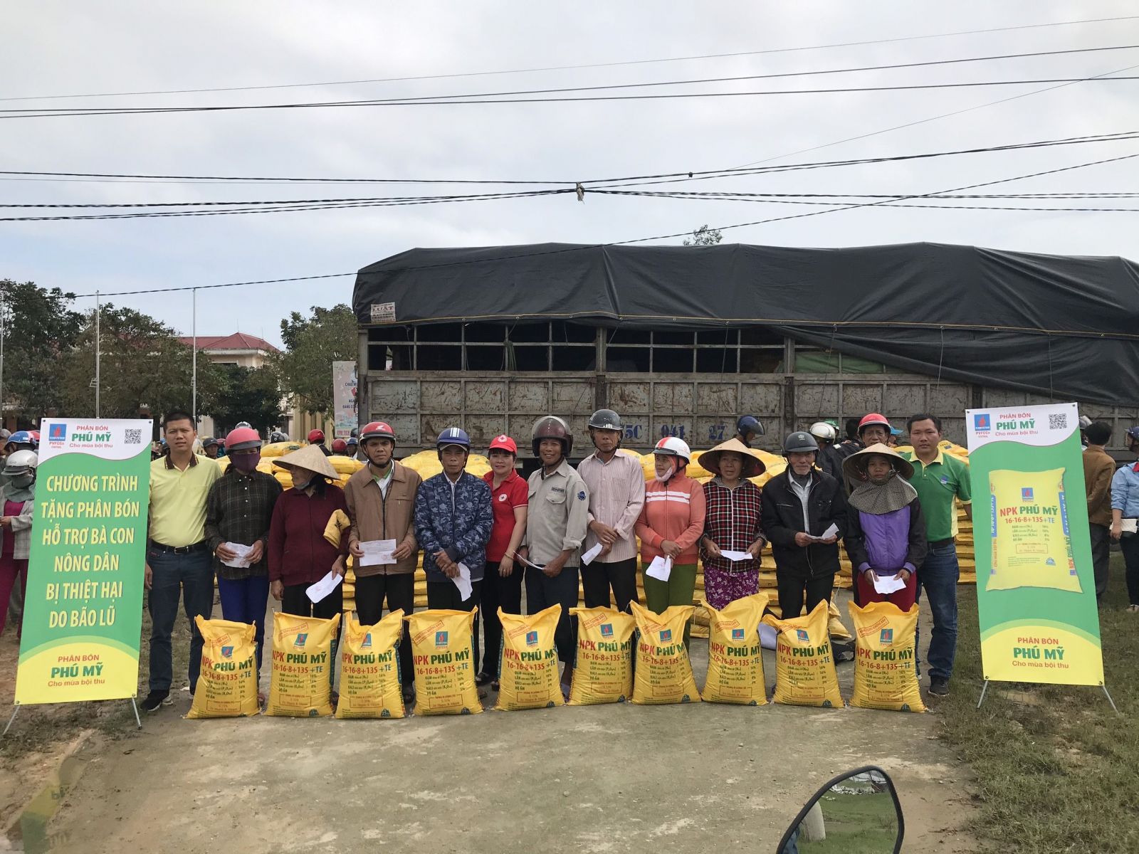Thấu hiểu những khó khăn của bà con nông dân chịu thiệt hại nặng nề do đợt đa thiên tai vừa qua, bắt đầu từ ngày 1/12/2020 cho đến ngày 10/12/2020, Tổng công ty Phân bón và Hóa chất Dầu khí (PVFCCo) và các đơn vị thành viên đã tổ chức trao tặng phân bón Phú Mỹ cho bà con nhằm giúp bà con phục hồi sản xuất nông nghiệp chuẩn bị cho vụ Xuân/Đông Xuân. Phối hợp với PVFCCo và các đơn vị thành viên trong đợt trao tặng này có Hội chữ Thập đỏ, Mặt trận tổ quốc, Chính quyền tại các địa phương diễn ra chương trình.