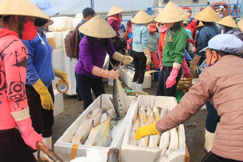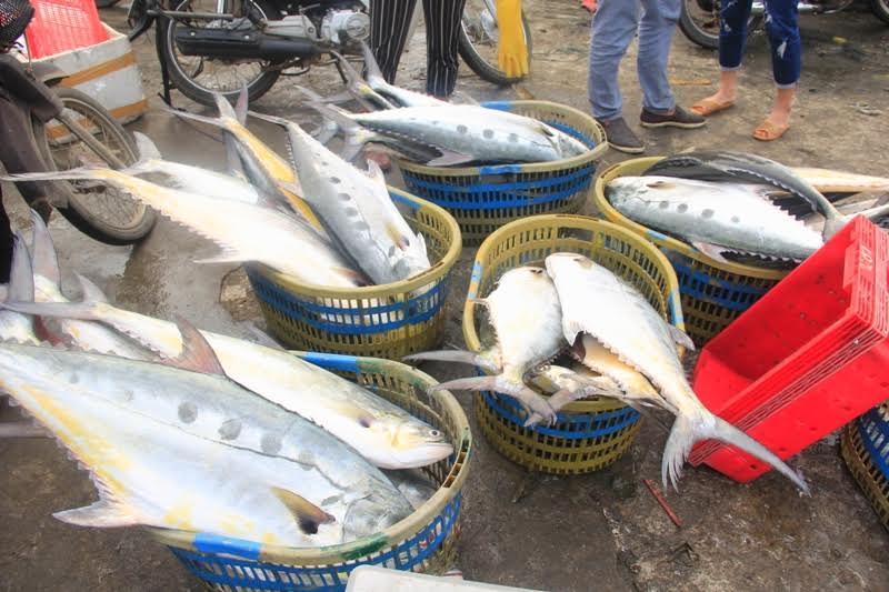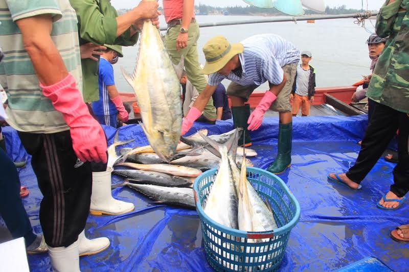 Chuyến biển của ngư dân Lê Tuấn (trú xã Gio Việt, huyện Gio Linh, tỉnh Quảng Trị) đánh bắt khu vực biển Quảng Trị đang trúng đấm mẻ cá bè vàng ước chừng khoảng 100 tấn.