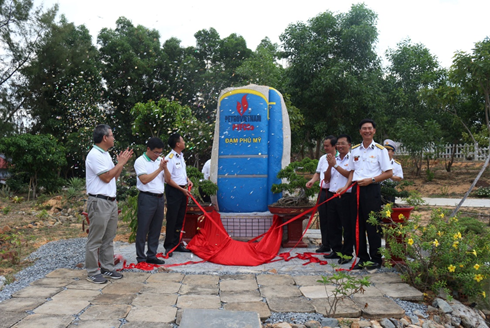 Cũng trong chương trình đoàn đã khánh thành công trình lưu niệm tháp tạo hạt bằng đá đặt tại khuôn viên Lữ đoàn – tượng trưng cho sự gắn kết, tình cảm gắn bó khăn khít giữa 2 đơn vị và cùng cán bộ, chiến sỹ đơn vị thành kính dâng hương, đặt vòng hoa Đài tưởng niệm chiến sỹ Gạc Ma.