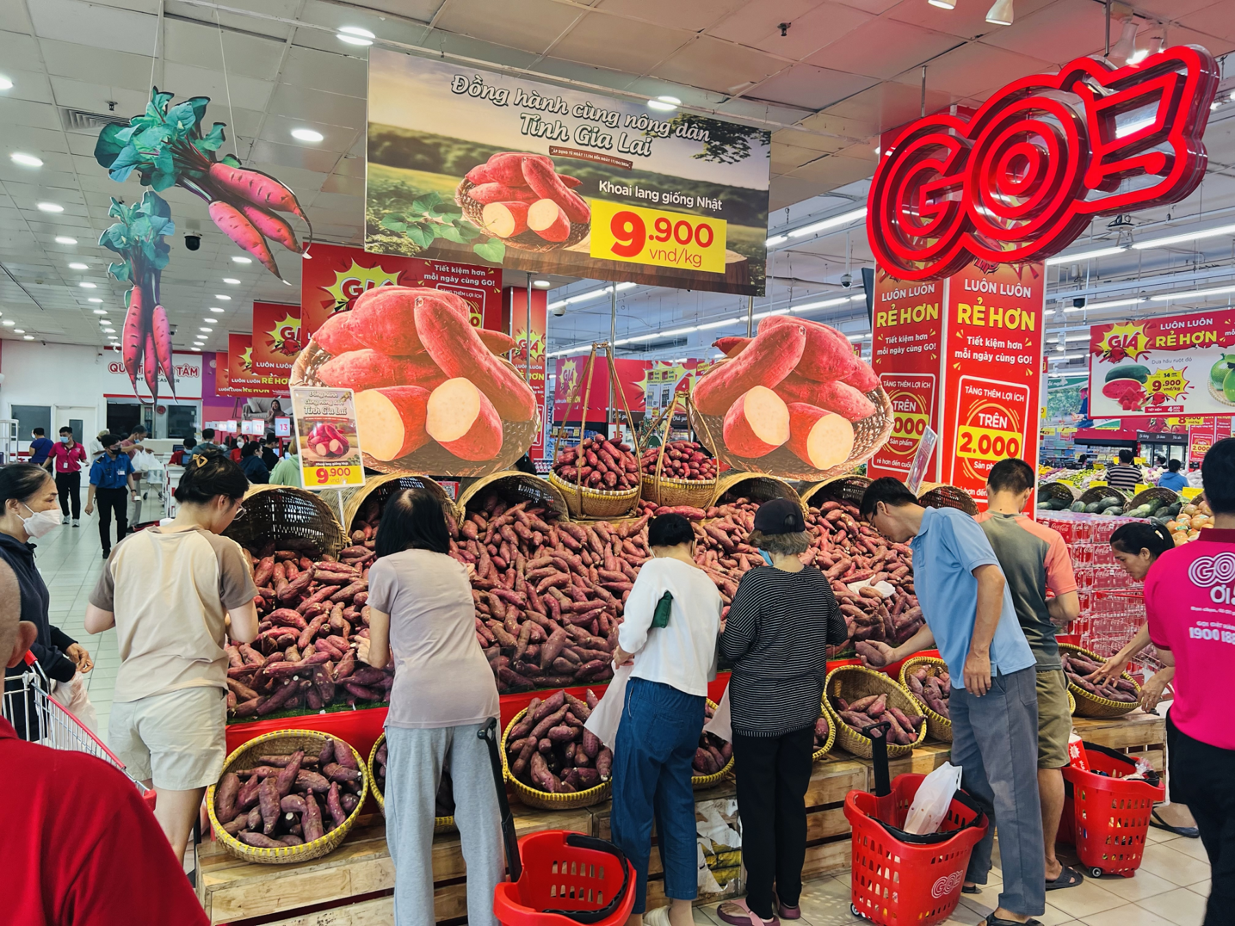 Người tiêu dùng mua khoai lang tại siêu thị GO! ủng hộ người dân trồng khoai ở Gia Lai.