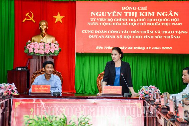 Tối 25/11, Chủ tịch Quốc hội Nguyễn Thị Kim Ngân đã đến thăm và trao tặng Quỹ an sinh xã hội tại tỉnh Sóc Trăng. Chủ tịch Quốc hội mong muốn tỉnh Sóc Trăng sử dụng nguồn tài trợ đạt hiệu quả cao nhất, góp phần cùng cả nước thực hiện có hiệu quả các chương trình an sinh xã hội, chương trình mục tiêu quốc gia về giảm nghèo bền vững. Ban Chấp hành, Ban Thường vụ khóa mới phát huy tinh thần đoàn kết, cụ thể hóa các chương trình hành động, triển khai thực hiện các chương trình, dự án… nhằm sớm đưa Nghị quyết Đại hội Đảng bộ tỉnh Sóc Trăng lần thứ XIV, nhiệm kỳ 2020-2025 vào cuộc sống.