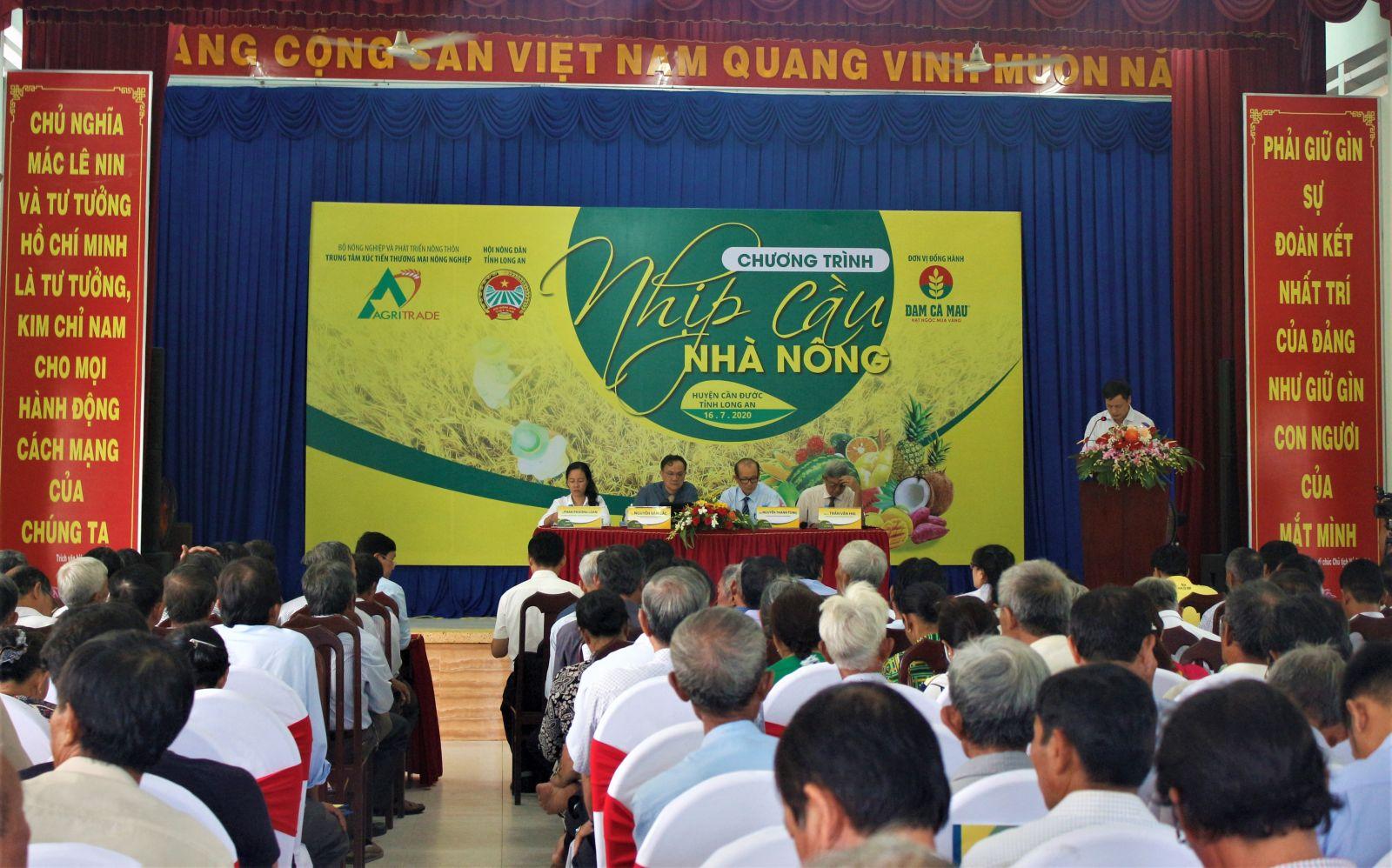 Chương trình “Nhịp cầu nhà nông” tại Long An nằm trong chuỗi chương trình “Nhịp cầu nhà nông - 2020” tại các tỉnh, thành Đồng bằng sông Cửu Long của Trung tâm Xúc tiến Thương mại Nông nghiệp trực thuộc Bộ Nông nghiệp và Phát triển nông thôn với sự đồng hành của thương hiệu Đạm Cà Mau thuộc Công ty Cổ phần Phân bón Dầu khí Cà Mau (PVCFC).
