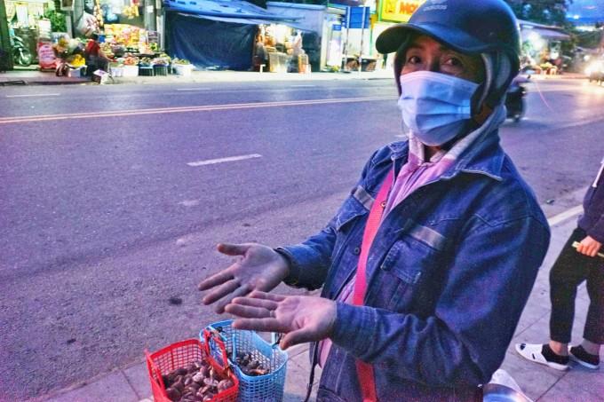Bà Xuân mếu máo: “Tôi cũng biết ở đây là nơi xe cộ đông đúc không an toàn. Khi công an yêu cầu tôi đi sang đường khác bán, từ 10h30 – 16h30 tôi di chuyển đến đường khác đứng mà không một ai hỏi nên cực chẳng đã tôi phải về lại chỗ này”.