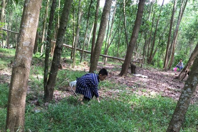 Người già, lẫn trẻ nhỏ ở Huế mỗi mùa mưa thu lại lần theo những vùng gò đồi có nấm tràm để kiếm thêm thu nhập. Ảnh: Thắng Hòa.