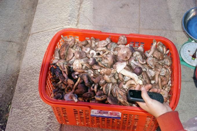 Đa số những người bán nấm trực tiếp mang nấm hái được tới bán, nhằm kiếm thêm thu nhập, thay vì phải bán cho thương lái. Ảnh: Thắng Hòa.