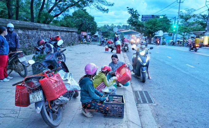 Khung cảnh sáng sớm 6h đến hơn 20h tối trước Đàn Nam Giao (Thành phố Huế) nhộn nhịp không ngớt. Khoảng 10 tiểu thương từ nhiều nơi của tỉnh Thừa Thiên - Huế góp mặt họp thành cái “chợ chạy” tự phát tới đây đợi khách.