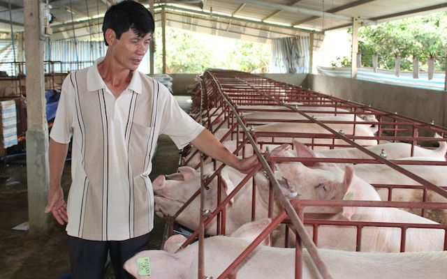 Ông Vòng Mằn Pắn (xã Bình Sơn, Long Thành, Đồng Nai) và đàn lợn đã đến tuổi xuất chuồng. Ảnh: I.T