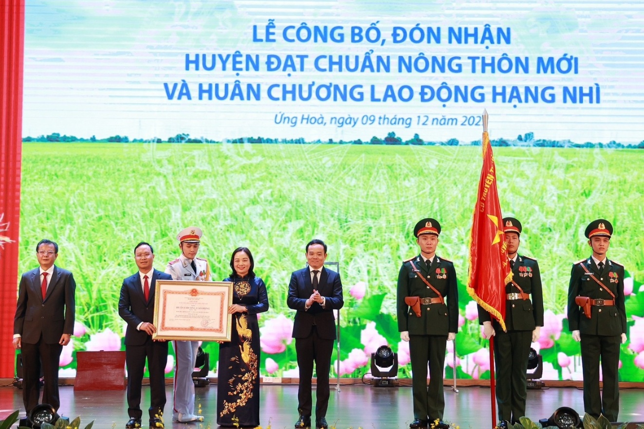 Sáng 9/12, Huyện Ứng Hòa (Hà Nội) đã tổ chức Lễ công bố, đón nhận huyện đạt chuẩn Nông thôn mới và Huân chương Lao động hạng Nhì.