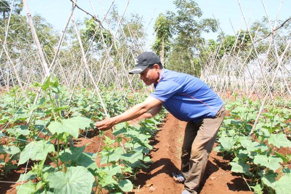 Thành viên HTX sản xuất rau an toàn công nghệ cao Hòa Hiệp chăm sóc cây trồng. |