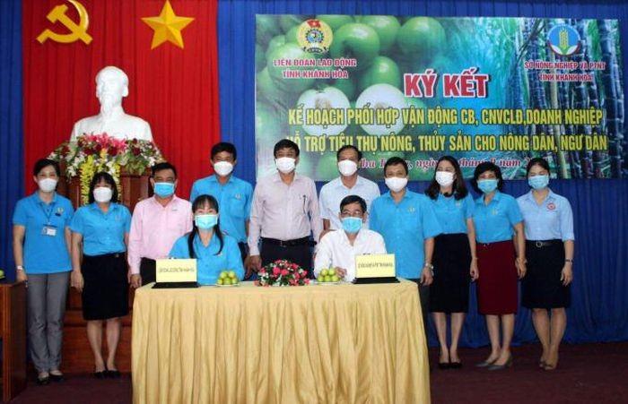 Ngành nông nghiệp Khánh Hòa và Liên đoàn Lao động tỉnh ký kết hỗ trợ tiêu thụ nông thủy sản cho nông, ngư dân. Ảnh: VG.