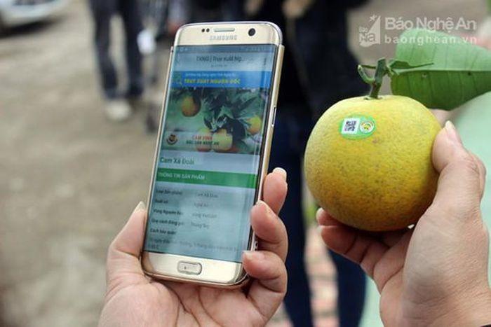 Dán tem truy xuất nguồn gốc cam Vinh để cập nhật thông tin sản phẩm lên các trang thương mại điện tử. Ảnh: Quang An