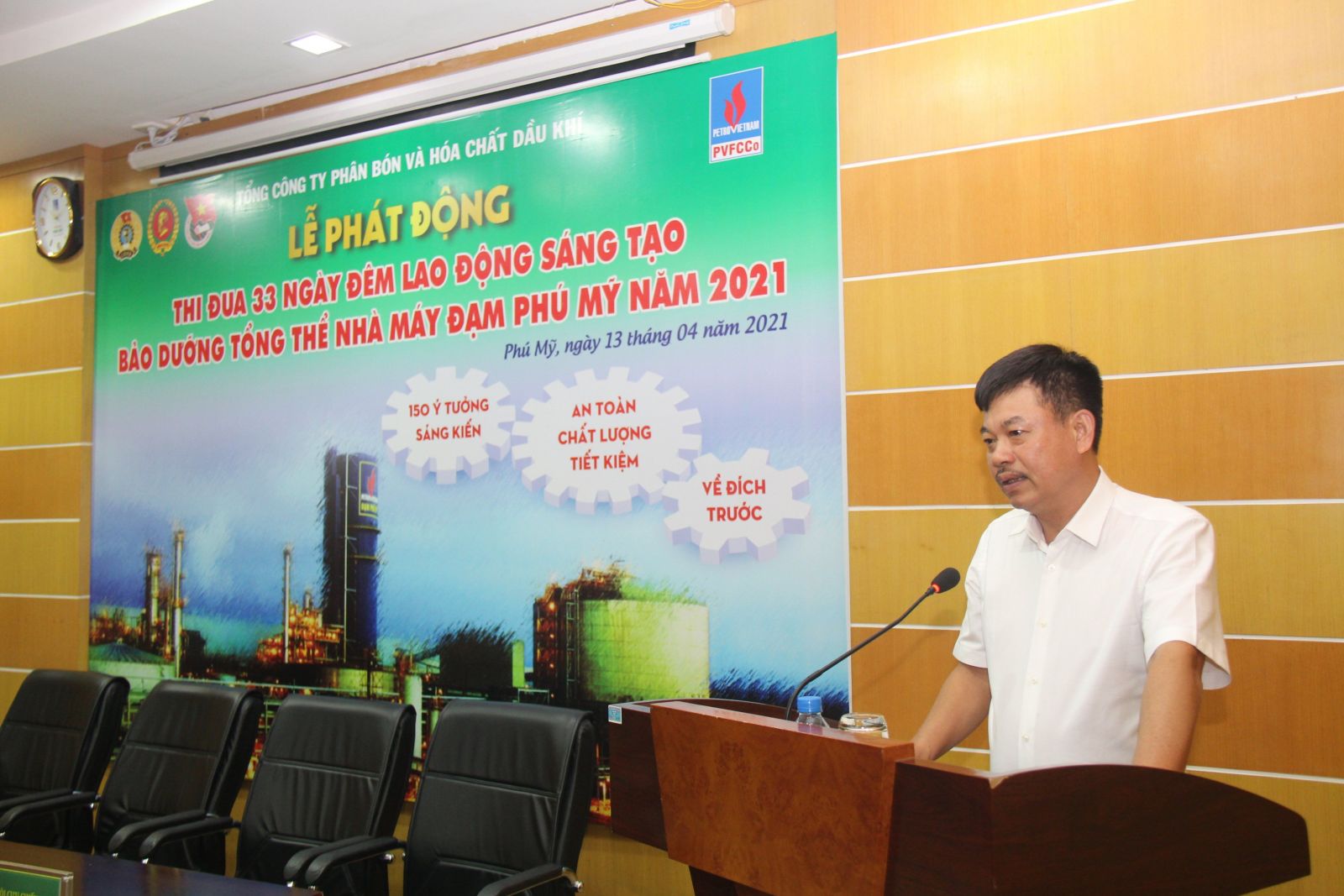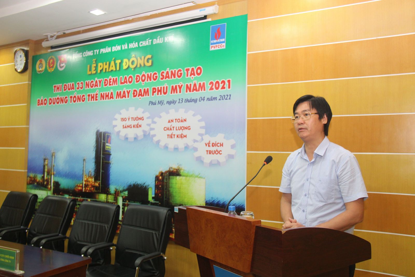 Phát biểu tại lễ phát động, đồng chí Lê Cự Tân đã nhấn mạnh sự cần thiết, tầm quan trọng của công tác bảo dưỡng nhà máy Đạm Phú Mỹ đối với PVFCCo. Tổng Giám đốc yêu cầu Ban chỉ đạo, lãnh đạo các ban chuyên môn TCT, Ban chỉ huy trưởng công trường tăng cường rà soát, kiểm soát tiến độ để rút ngắn thời gian BDTT và sẵn sàng các phương án phòng chống dịch Covid để đảm bảo an toàn tuyệt đối cho kế hoạch bảo dưỡng. TGĐ cũng kêu gọi cán bộ công nhân viên tham gia công tác bảo dưỡng nỗ lực phấn đấu làm việc với tinh thần trách nhiệm cao nhất, phát huy ý tưởng sáng kiến để đạt 4 chỉ tiêu trong công tác bảo dưỡng: An toàn cao nhất, chất lượng tốt nhất, tiết kiệm nhiều nhất, tiến độ nhanh nhất. Kết thúc đợt bảo dưỡng, TGĐ sẽ xem xét để có chính sách khen thưởng động viên đối với các tập thể và cá nhân có thành tích xuất sắc.