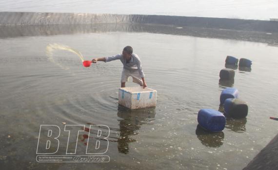 Xử lý môi trường ao nuôi tôm vụ đông.