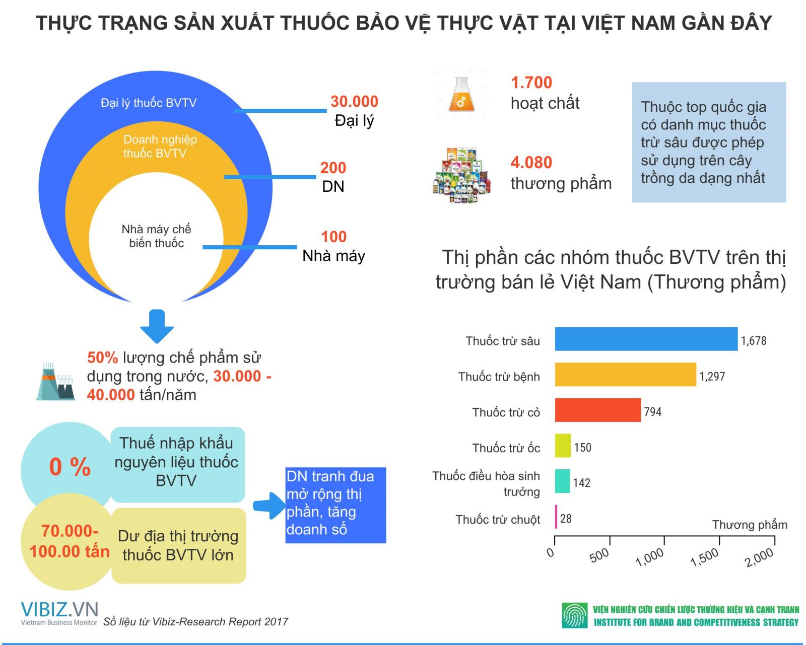 Việt Nam thuộc top Quốc gia có danh mục thuốc trừ sâu được phép sử dụng trên cây trồng đa dạng nhất, với 1.700 hoạt chất và 4.080 thương phẩm. Trong đó thị phần thuốc trừ sâu, thuốc trừ bệnh chiếm thị phân lớn nhất trên thị trường bán lẻ.