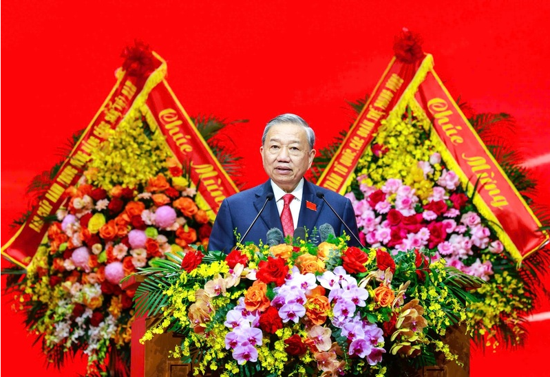 Thay mặt lãnh đạo Đảng, Nhà nước, Tổng Bí thư Tô Lâm gửi những tình cảm và lời chúc mừng tốt đẹp nhất đến các đồng chí lãnh đạo, nguyên lãnh đạo Đảng, Nhà nước cùng 453 đại biểu chính thức, đại diện cho trí tuệ, ý chí thống nhất và khát vọng phát triển của toàn thể đảng viên trong toàn Đảng bộ Chính phủ.