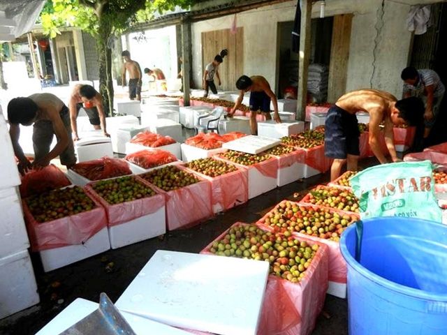 Vải sớm Thanh Hà được đóng vào thùng xốp, chủ yếu xuất sang Trung Quốc và một số thành phố lớn như Hà Nội, TP Hồ Chí Minh... Ảnh: Internet